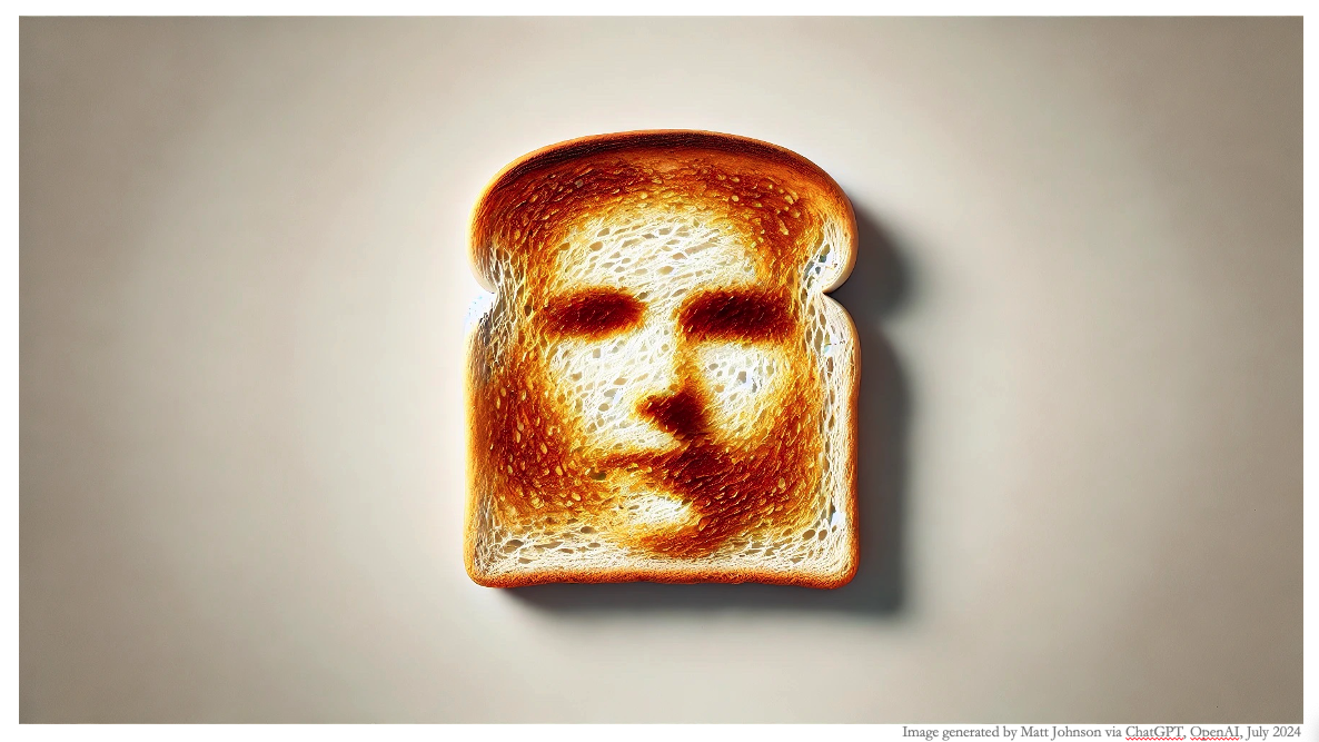 As a neuroscientist who studies experiential marketing, we’ve come to understand that the human brain is not a passive receiver of information. We’re “meaning seeking” creatures; the brain is a "meaning seeking" organ. But here’s the thing: We have SUCH a drive to see meaning, that we find it - or think we’ve found it - amidst randomness and incoherence. This is why, for example, you’ll look up to the clouds and you’ll see what looks like a face. This is why, every year 1000s of people claim with certainty that Elvis Prestley showed up in their toast.